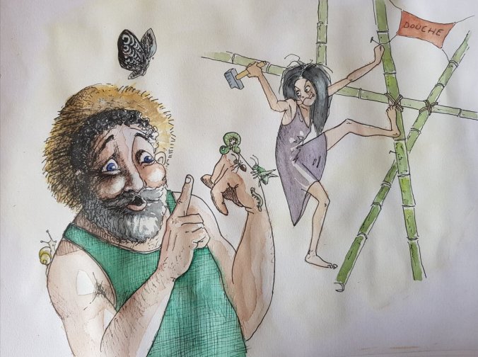 Notamment les insectes. On vit sur un campement sur un terrain en Corse. Autant dire qu’on cohabite avec les fourmis, les guêpes, les moustiques et autres insectes de l’amour. J’ai rien contre eux, je suis chez eux en quelques sortes. Mais si y’en a un sur mon passage, je ne lui laisse pas le temps de baver dans mon assiette, que les choses soient claires.